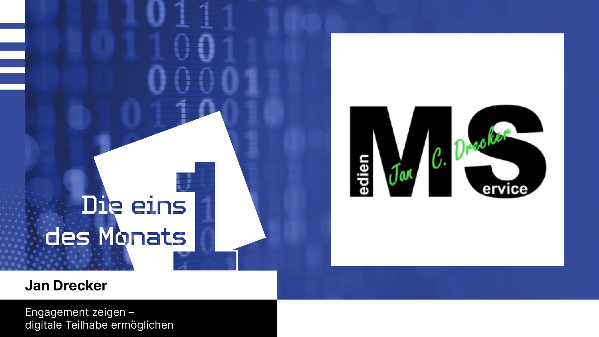 Mit der Auszeichnung „EINS des Monats“ würdigt unser Verein jeden Monat Menschen und Initiativen, die unsere digitale Welt verantwortungsvoll, mutig und mit gesellschaftlichem Mehrwert gestalten. Im April ehren wir Jan Drecker als EINS des Monats.